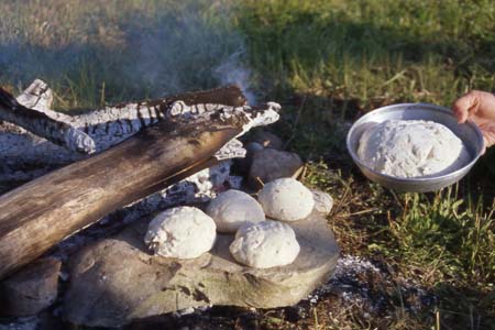 gefüllte Hefeteigtaschen auf dem Lagerfeuer